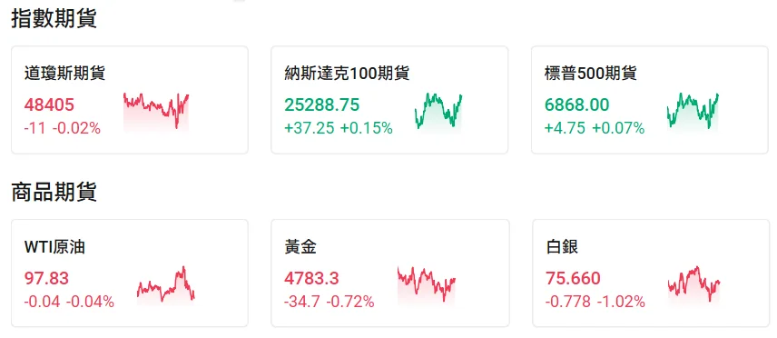 Market Snapshot Before the market opened on Wednesday, Nasdaq 100 futures rose by 0.15%, S&P 500 futures increased by 0.07%, Dow futures declined by 0.02%, U.S. crude oil advanced by 0.04%, and spot gold fell by 0.72%. As the Middle East conflict and Iran’s blockade of the Strait of Hormuz triggered a surge in energy