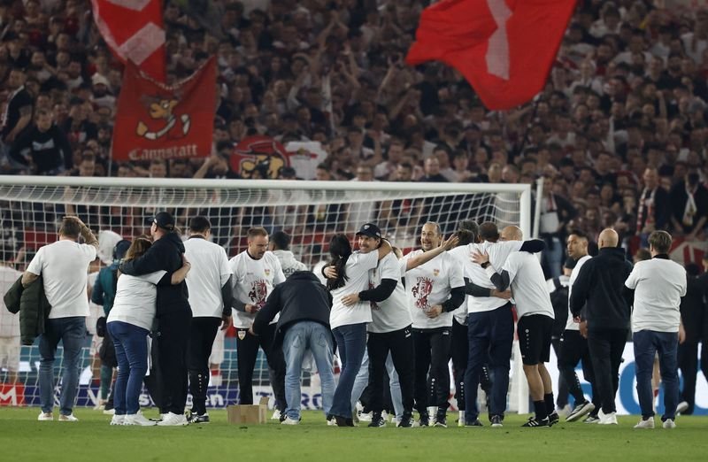 The supporters displayed the words “UEFA mafia” behind one of the goals before Tuesday’s match against Scottish team Celtic, above a banner saying “You don’t care about the sport – all you care about is money!” Another banner above showed a website link making clear the banners referred to Champions League reforms.