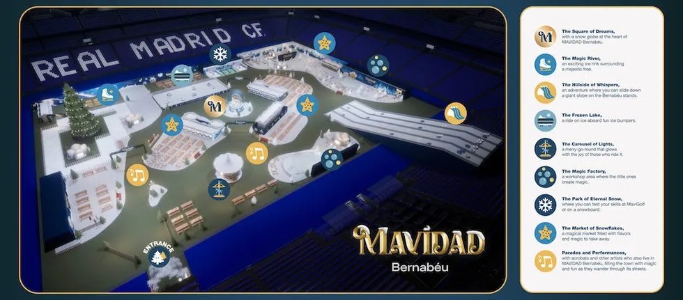 Real Madrid is transforming its Santiago Bernabéu stadium into a festive theme park over the Christmas period. Between December 24 and 31, during LaLiga’s two-week break, the Spanish football team will convert its 84,000-seat home arena into a family-friendly event space, featuring lights, live music, and shows. The move will generate extra revenue from the