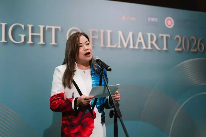 The Secretary for Culture, Sports and Tourism, Miss Rosanna Law, speaks at the Hong Kong Night @ FILMART 2026 today (March 17). Source: HKSAR Government Press Releases