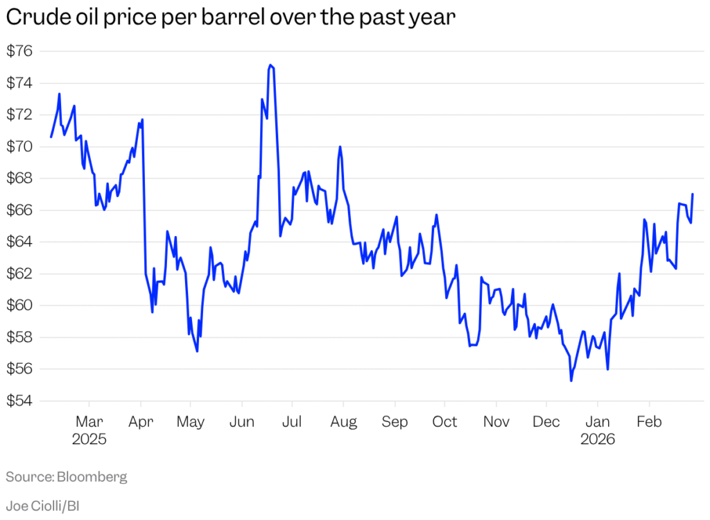 - Oil futures rose. West Texas Intermediate crude oil rose by about 1% to $82.34 a barrel. Brent crude, the international benchmark, climbed 0.8% to $85.82 a barrel.